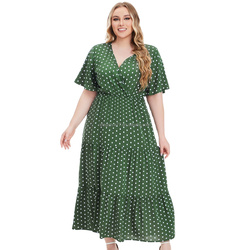 G.O.L.D Vestido de verano para mujeres de talla grande Nuevo Europeo Americano Cross-Border MMV Collar Polka Dot manga corta Bodycon Fat Women